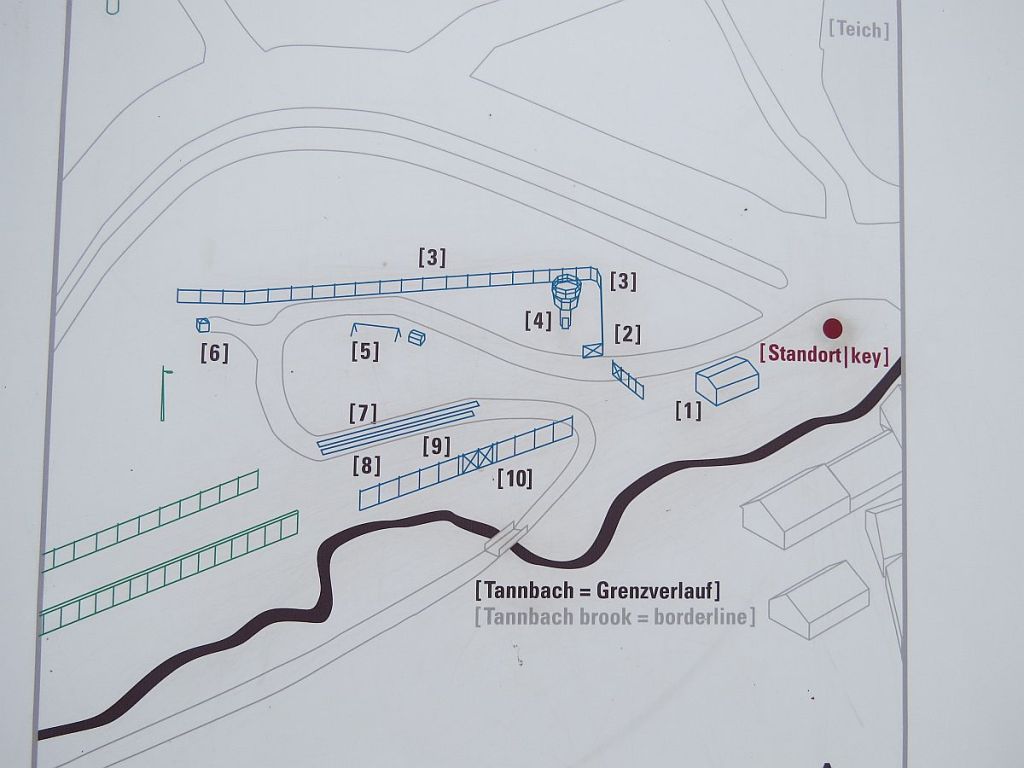 Aufbau der Grenzanlage hier vor Ort. Die schwarze Linie ist der Bachverlauf und Grenze. Anschließend einen kleinen Rundgang durch das Freigelände.