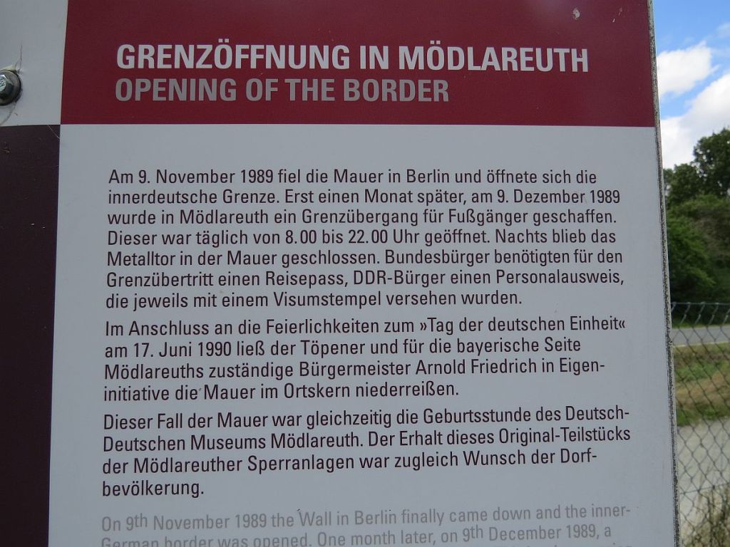 Was ich gezählt habe, sind die von mir fotografierten Schilder, die auf die Grenzöffnung hinweisen. Ich habe davon ja nur einen kleinen Teil in den Blog gesetzt. Heute also das letzte Schild.
