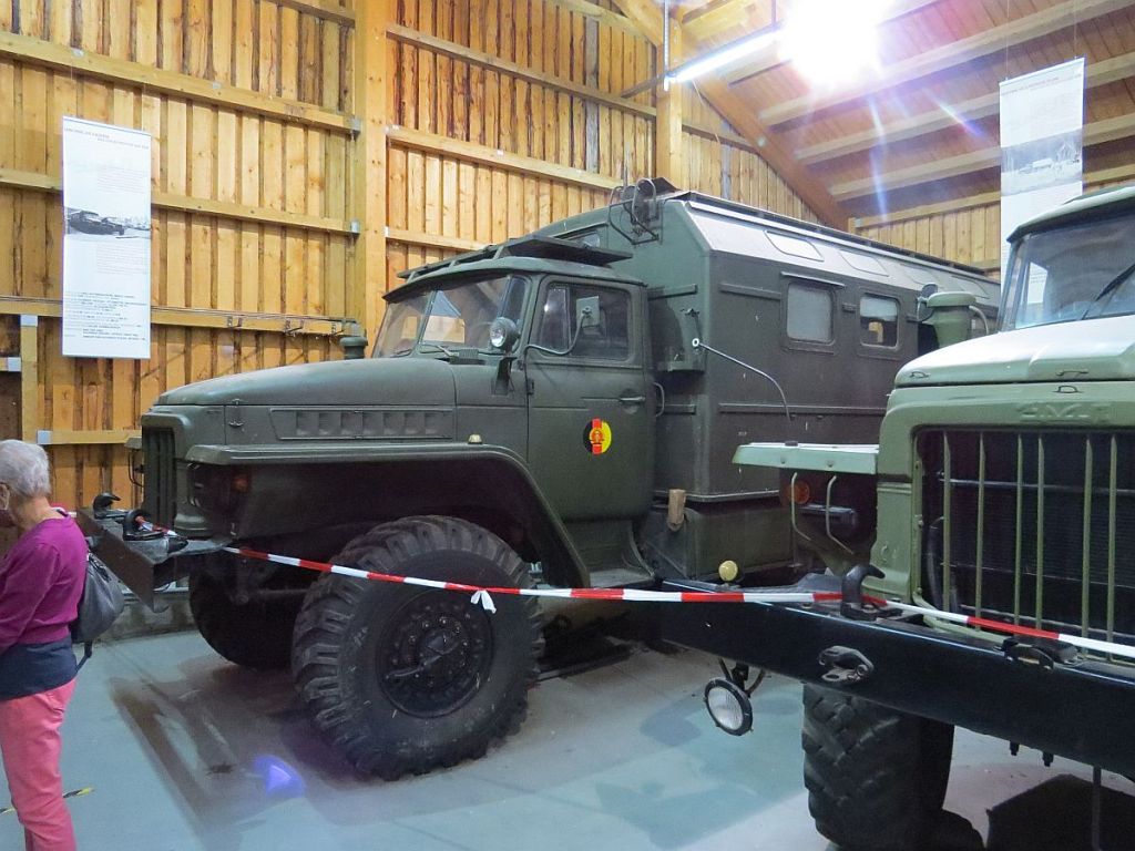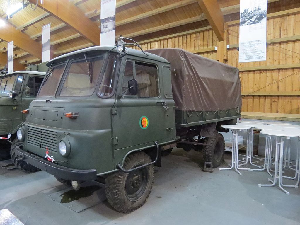 In einem alten, angrenzenden Stallgebäude werden diverse Wagen der NVA und des Bundesgrenzschutzes ausgestellt.