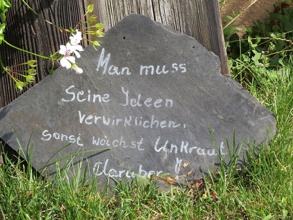Den Stein mit der Aufschrift, im letzten Bild habe ich heute rund 7km vor dem Ende im Garten von Leuten in Gassenreuth gesehen. Ist doch wie für mich gemacht – dem kann ich nichts hinzufügen.