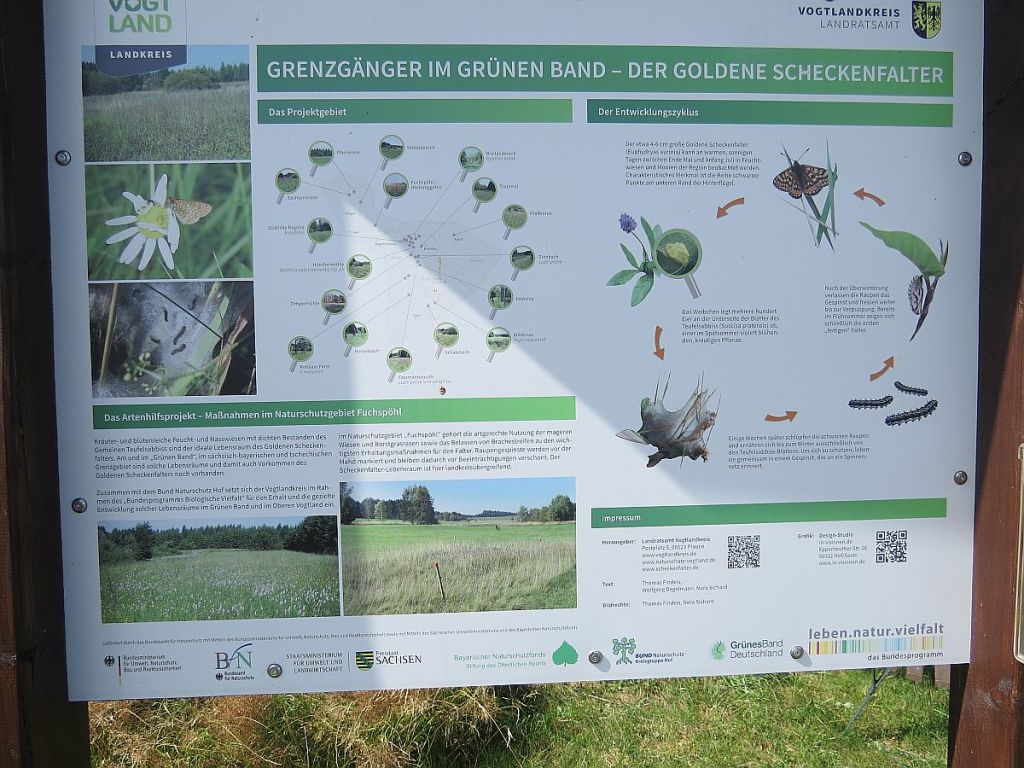 Die von Süden kommende A 93 trifft sich hier mit der A 72. Naturschützer haben es verhindert, dass diese Autobahn direkt auf das Grüne Band gebaut wurde, das hier in vielen Bereichen sehr geschützt und gepflegt wird. Hier nur ein Beispiel.